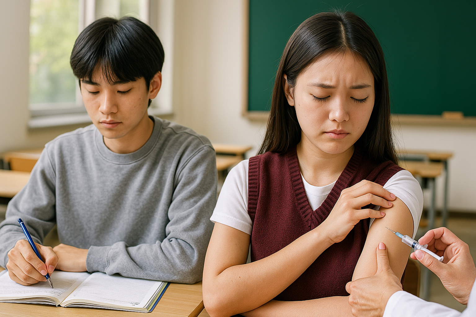 예방접종을 마친 후 일시적으로 미열, 두통, 피로감이 나타날 수 있습니다. 이는 자연스러운 면역 반응이며, 보통 1~2일 내 회복되지만 수험생의 학습 스케줄에는 영향을 줄 수 있어 접종 시점 조율이 중요합니다.