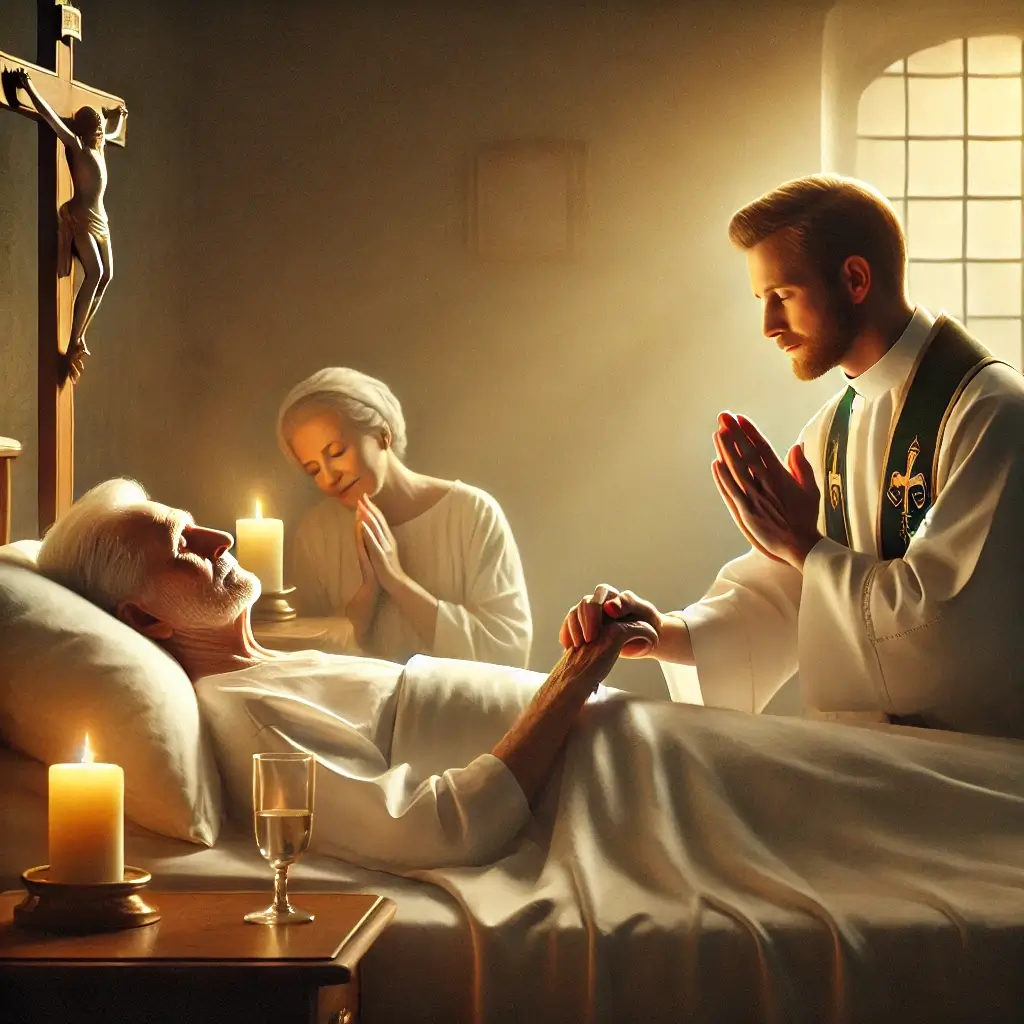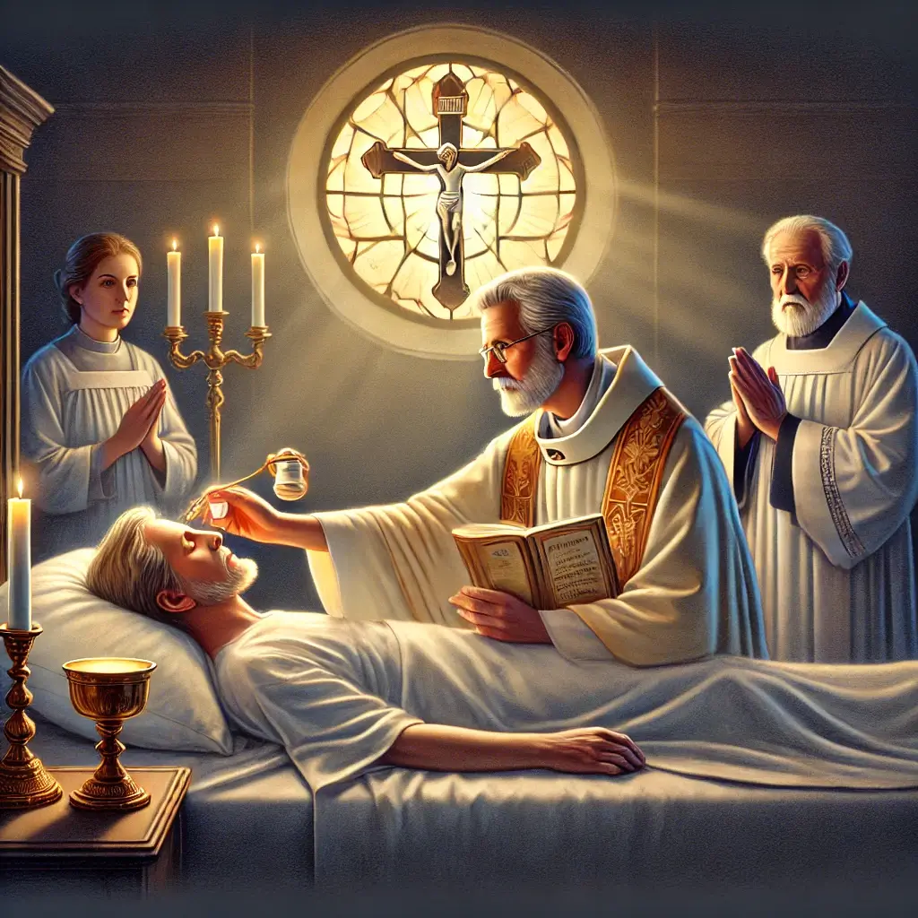 임종 기도문은 천주교의 '병자성사'라는 더 큰 의식의 일부입니다. 병자성사는 다음과 같은 요소들로 구성됩니다: